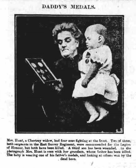 Eleanor Hunt and one of her grandsons. The Framlingham Weekly News 13 February 1915.