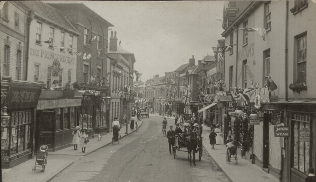 Guildford Street with Morton’s boot shop on the right. Image courtesy of Chertsey Museum.