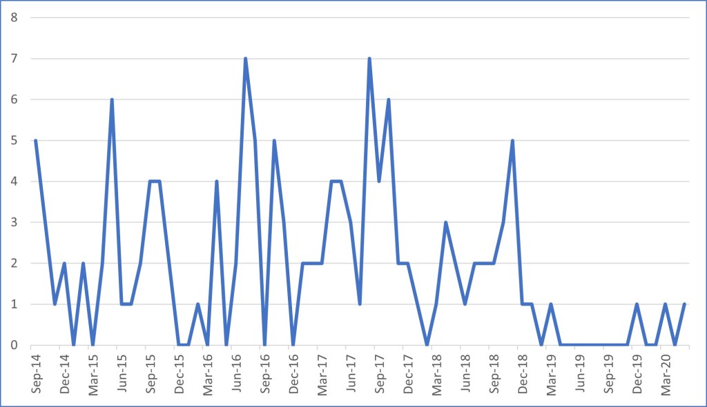Deaths per month of those named on the Chertsey Town War Memorial (Source: Chertsey Museum)